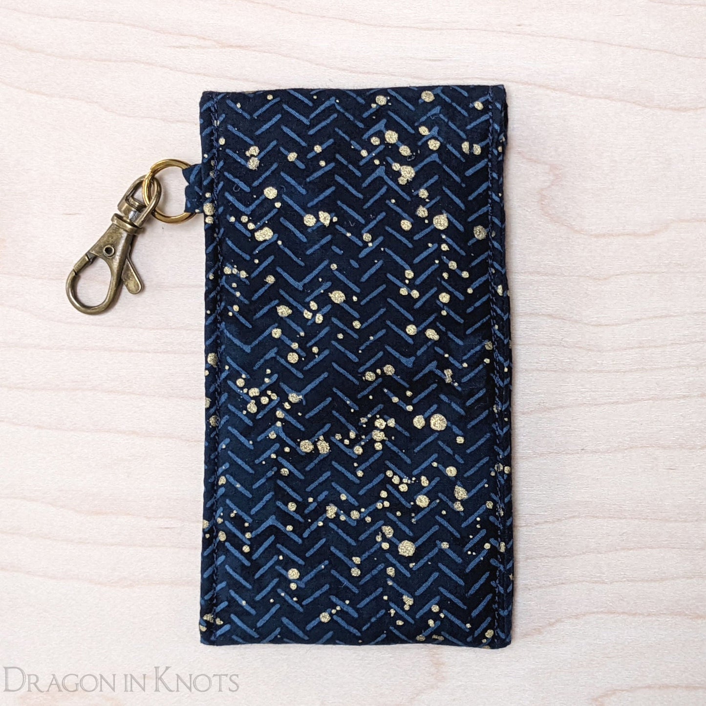 A navy blue pouch with gold speckles for your lip gloss or similarly-sized items.